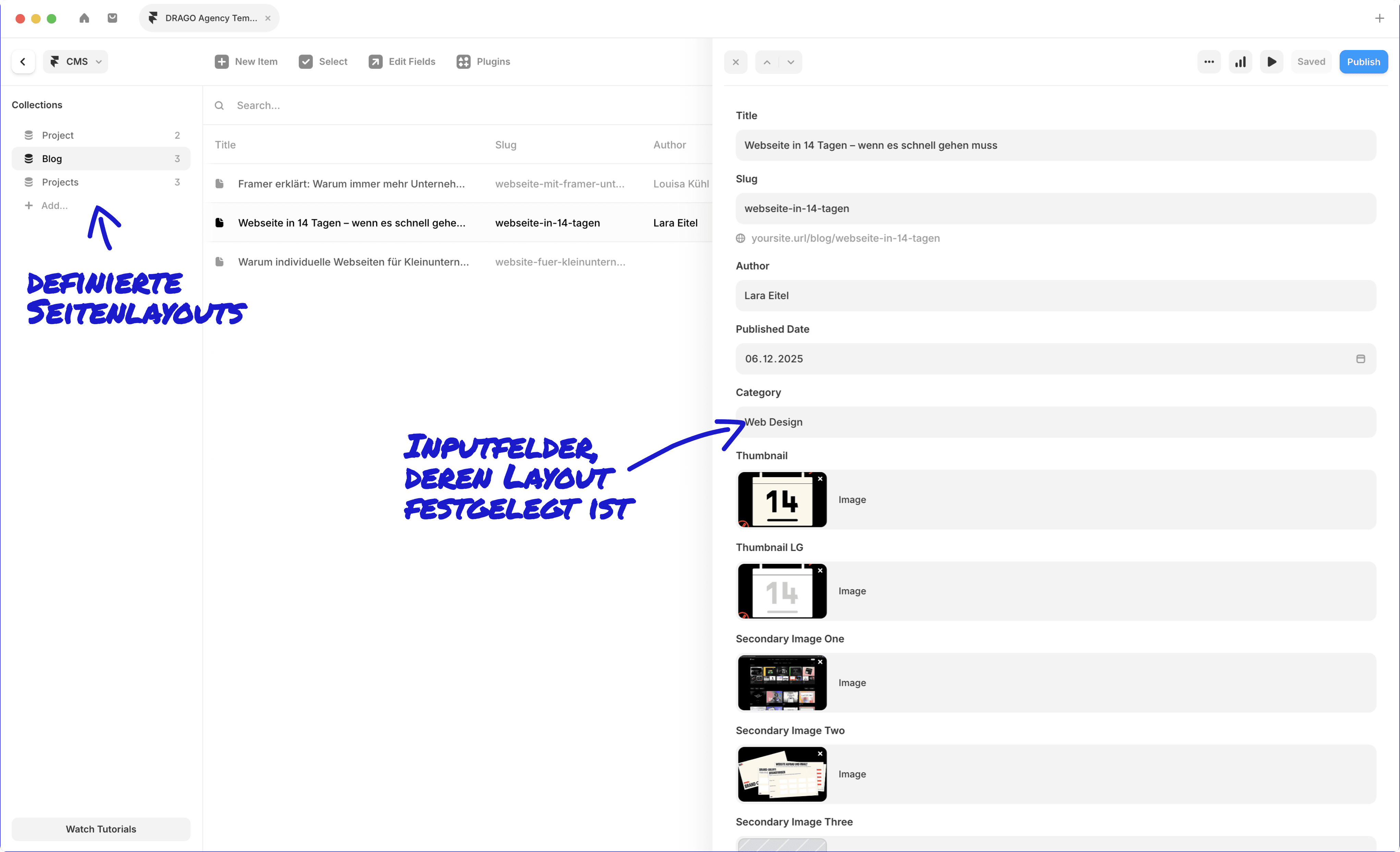 Framer ermöglicht eine besonders unkomplizierte Verwaltung von Inhalten. Durch das integrierte, leicht verständliche CMS können Texte, Bilder und ganze Sektionen schnell aktualisiert werden – ganz ohne technische Kenntnisse. Teams können Inhalte jederzeit selbst anpassen, neue Blogartikel veröffentlichen oder Landingpages erweitern. Das erleichtert nicht nur die tägliche Arbeit, sondern erhöht auch die Flexibilität bei Marketing- und Kommunikationsmaßnahmen.